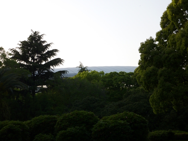 木々の上のほうに見える屋根は「長居陸上競技場」