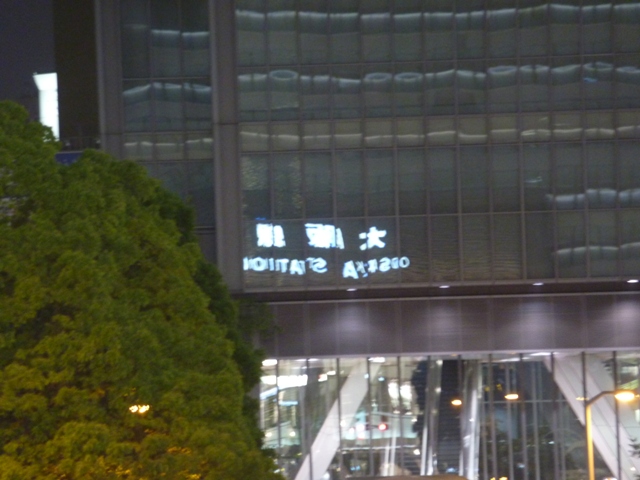 大阪駅南口の駅名表示が向かいのビルに映ってて面白かったので撮りましたが。。。。。
